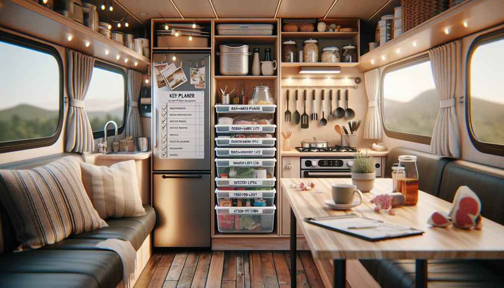 Hermetyczne pojemniki, kompaktowa lodówka do kampera, sucha żywność oraz przechowywanie zapasów według systemu FIFO to sposób na świeżość i bezpieczeństwo. Przydatne są również pojemniki na wodę i osobne miejsce na przetwory w szafkach.